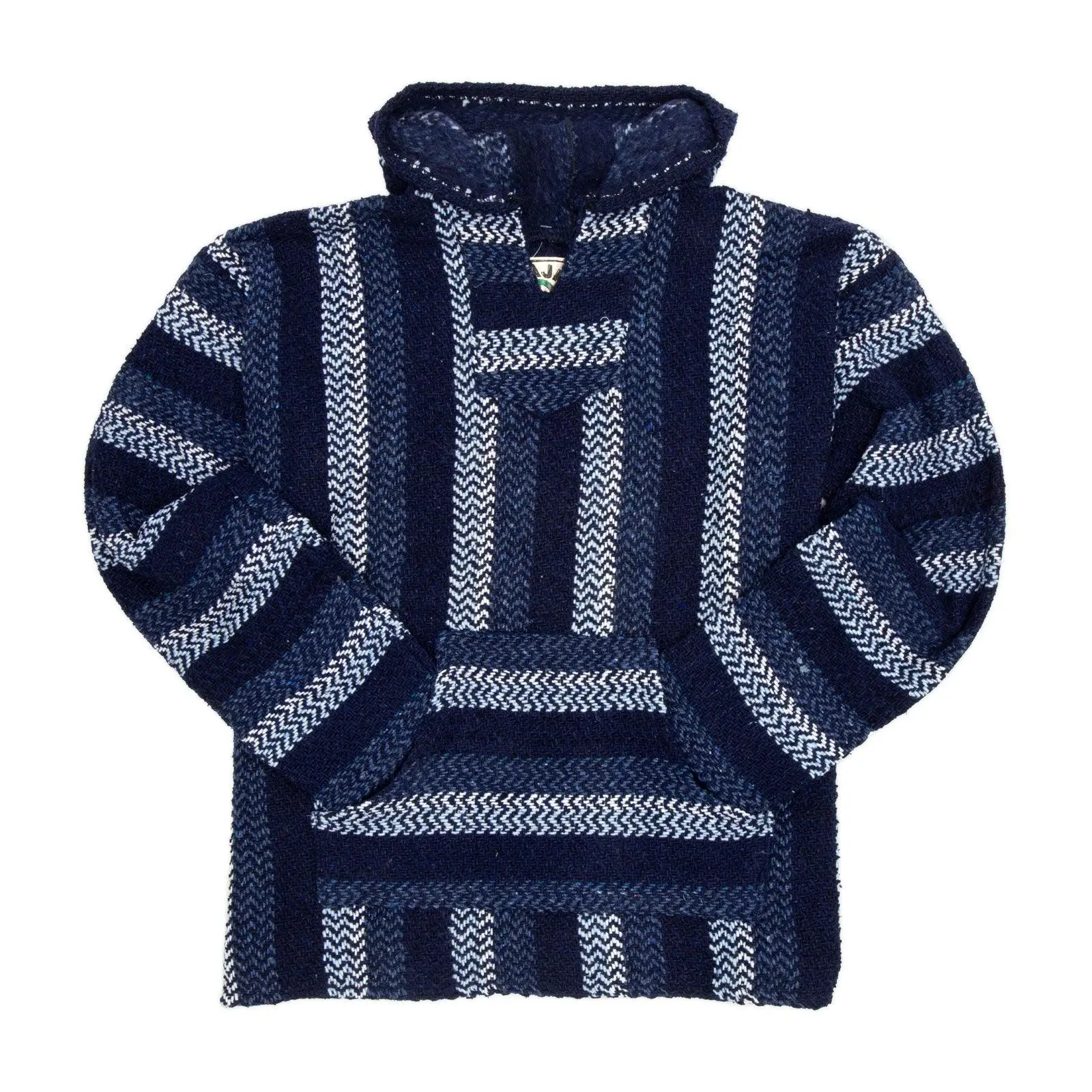 The classic stripe baja gets a modern color update! Whether you call it a Baja, Jerga, or Drug Rug, this is an essential item for all hippies. Super comfy and loose fitting, our bajas feature a large hood and front hand-pocket. And, as if you didn’t have enough reasons to love them, they are made with 100% recycled eco-yarns so they are environmentally and vegan friendly.